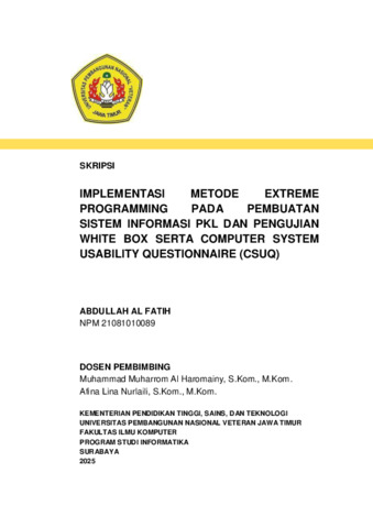 Fatih, Abdullah Al (2025) Implementasi Metode Extreme Programming pada Pembuatan Sistem Informasi PKL dan Pengujian White Box serta Computer System Usability Questionnaire (CSUQ). Undergraduate thesis, UPN Veteran Jawa Timur.