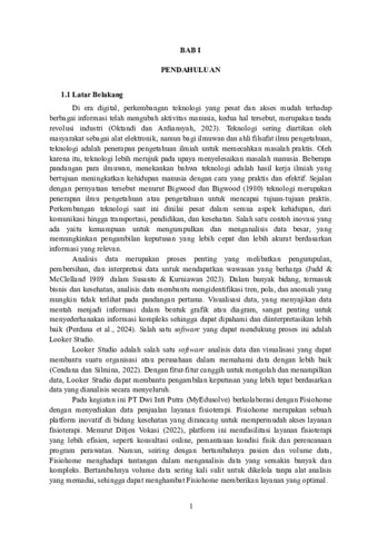 In the digital era, rapid technological advancements and easy access to information have transformed various aspects of life, including the healthcare sector. One innovative application is the ability to collect and analyze big data for faster and more accurate decision-making. PT Dwi Inti Putra (MyEdusolve) has collaborated with Fisiohome, an innovative platform that facilitates access to physiotherapy services by providing data on the sales of physiotherapy services. According to the Directorate General of Vocational Education (2022), Fisiohome enables more efficient physiotherapy services such as online consultations, physical condition monitoring, and treatment program planning. However, as the number of patients and data volume increases, Fisiohome faces challenges in analyzing the growing and increasingly complex data. The increasing volume of data is often difficult to manage without adequate analytical tools, which hinders Fisiohome from delivering optimal services. This initiative aims to address the data analysis challenges faced by Fisiohome by utilizing Looker Studio as a data analysis and visualization tool. According to Wibowo et al. (2022), through analyzing the company's needs and using Looker Studio, complex data can be processed efficiently and the results can be presented in an easily understandable manner. It is expected that this solution will help Fisiohome overcome data analysis challenges, continue to deliver high-quality services, and improve patient well-being. Ultimately, the appropriate application of analytical technology will strengthen Fisiohome's position as the leading digital-based physiotherapy service provider in Indonesia.