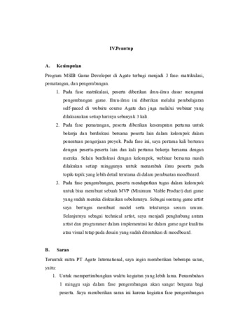 LAPORAN AKHIR MAGANG & STUDI INDEPENDEN BERSERTIFIKAT Game Developer di PT Agate International