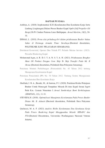 Murtadha, Muh. Dzaky (2024) ANALISIS RISIKO KESELAMATAN DAN KESEHATAN KERJA (K3) PADA PROSES BUNKER KAPAL TUNDA (TUG BOAT) DI PT. PELINDO MARINE SERVICE. Project Report (Praktek Kerja Lapang dan Magang). FAKULTAS TEKNIK DAN SAINS, SURABAYA. (Unpublished)