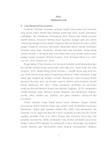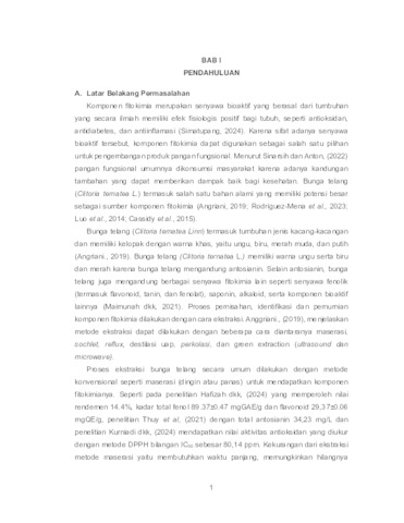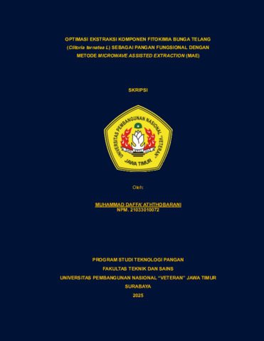 Muhammad Daffa' Aththobarani, Daffa (2025) Optimasi Ekstraksi Komponen Fitokimia Bunga Telang (Clitoria ternatea L) Sebagai Pangan Fungsional dengan Metode Microwave Assisted Extraction (MAE). Undergraduate thesis, UPN "Veteran" Jawa Timur.