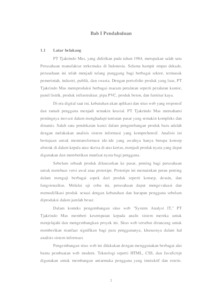 Ketika sebuah pengembang situs web memiliki ide untuk produk baru, penting untuk melakukan analisis sistem informasi secara menyeluruh sebelum ide tersebut diwujudkan. Ide awal biasanya muncul sebagai konsep di kepala seseorang atau sketsa kasar di atas kertas. Namun, sebelum ide tersebut diproduksi secara massal oleh perusahaan, biasanya akan dibuat versi awal atau sampel dari produk tersebut yang dikenal sebagai prototipe. Di PT Tjakrindo Mas, analis sistem diberikan kesempatan untuk mengembangkan sebuah situs web inovatif yang berfokus pada analisis sistem informasi. Tujuan dari situs web ini adalah untuk memberikan manfaat bagi para pengguna dengan menyediakan sumber daya dan informasi yang relevan di bidang ini. Proses pengembangan situs web "System Analyst IT" dilakukan dengan memanfaatkan berbagai alat bantu pembuatan web yang canggih. Alat bantu ini mencakup bahasa pemrograman seperti HTML, CSS, dan JavaScript, serta sistem manajemen basis data seperti MySQL. Selain itu, framework modern seperti Laravel digunakan untuk memastikan pengembangan berjalan efisien dan hasil akhir sesuai dengan harapan. Dengan memanfaatkan teknologi ini, para analis sistem di PT Tjakrindo Mas mampu menyelesaikan proyek pengembangan situs web "System Analyst IT" secara optimal. Situs ini dirancang untuk membantu pengguna mencari rekomendasi mengenai alat, teknik, dan metodologi terbaik dalam analisis sistem informasi. Pengembangan situs web ini tidak hanya mencakup pembuatan prototipe awal tetapi juga penyempurnaan lebih lanjut agar situs tersebut dapat menjadi sumber daya yang komprehensif dan bermanfaat bagi pengguna. Pada akhirnya, proyek ini menjadi bagian dari Praktek Kerja Lapangan yang bertujuan untuk memberikan pengalaman praktis dan mendalam dalam mengembangkan situs web yang dapat memenuhi kebutuhan pengguna. Melalui pengembangan yang berkelanjutan, situs web "System Analyst IT" diharapkan dapat menjadi panduan yang handal dalam analisis sistem informasi.