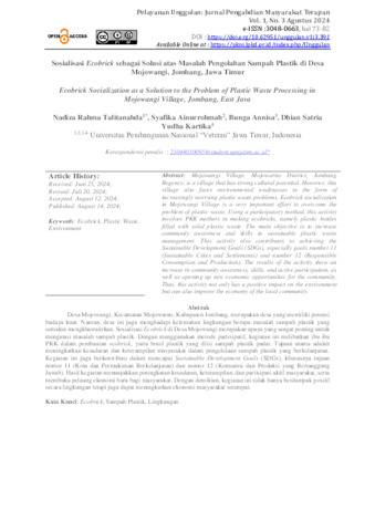 Sosialisasi Ecobrick sebagai Solusi atas Masalah Pengolahan Sampah Plastik di Desa Mojowangi, Jombang, Jawa Timur.pdf