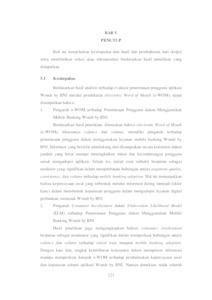 Wondr by BNI merupakan inovasi terbaru yang menggantikan aplikasi BNI Mobile Banking, menghadirkan fitur lebih lengkap dan layanan keuangan yang lebih personal. Dalam proses adopsinya, Wondr by BNI menghadapi tantangan dalam membangun kepercayaan dan mendorong minat pengguna untuk beralih dari aplikasi sebelumnya. Salah satu hal penting yang memengaruhi keputusan adopsi pengguna adalah Electronic Word of Mouth (eWOM), karena ulasan dan pengalaman pengguna lain sering dijadikan referensi utama sebelum menggunakan layanan digital, khususnya di era media sosial. Skripsi ini bertujuan untuk mengevaluasi pengaruh eWOM dan tingkat keterlibatan konsumen (consumer involvement) dalam kerangka Elaboration Likelihood Model (ELM) terhadap penerimaan aplikasi mobile banking Wondr by BNI. Penelitian ini melibatkan 401 responden di Surabaya dan dianalisis menggunakan metode PLS-SEM dengan bantuan perangkat lunak SmartPLS 4. Hasil penelitian menunjukkan bahwa valence, volume, initial trust, dan consumer involvement memiliki pengaruh signifikan terhadap penerimaan aplikasi. Temuan ini menggarisbawahi pentingnya membangun kepercayaan dan mendorong keterlibatan aktif pengguna dalam memperkuat keputusan adopsi Wondr by BNI. Hal ini dibuktikan melalui pengujian path coefficient dengan nilai p-values < 0,05 dan T-statistic > 1,96. Dengan demikian, ulasan, jumlah eWOM, tingkat kepercayaan awal, serta keterlibatan pengguna terbukti berperan penting dalam mendorong adopsi aplikasi Wondr by BNI. Kata kunci: Wondr by BNI, Electronic Word of Mouth, Elaboration Likelihood Model, Mobile Banking, PLS-SEM
