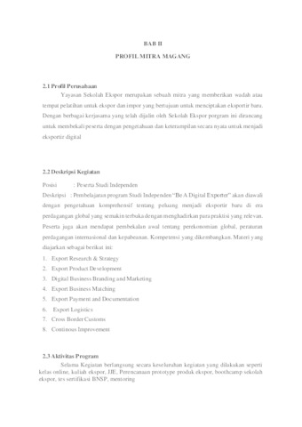 LAPORAN AKHIR MAGANG & STUDI INDEPENDEN BERSERTIFIKAT “BE A DIGITAL EXPORTER” Yayasan Sekolah Ekspor Nasional