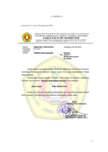 Dengan memanfaatkan kemajuan teknologi informasi, Universitas Pembangunan Nasional “Veteran” Jawa Timur melaksanakan program Praktek Lapangan Kerja yang dimana mahasiswa terutama pada program studi Sistem Informasi, mendapat pengalaman kerja di lapangan kerja. Penulis dalam pelaksanaan PKL di Lembaga MI Narrative Quran yang berada di Jl. Kalianyar Kelurahan Sukomulyo Lamongan. PKL berlangsung selama 1 bulan lebih tepatnya (sebulan dari 11 juli 2022 sampai dengan 11 agustus 2022), menangani permasalahan yang terdapat di perusahaan tersebut. Penulis ditempatkan di divisi Digital Operations Management atau yang disingkat dengan DOM, divisi tersebut menangani supervisi pada infrastruktur perusahaan dengan merancang serta dilakukannya implementasi pada rancangan yang telah dibuat guna terpantaunya seluruh progress. Dalam pelaksanaannya penulis sendiri melakukan perancangan pada suatu sistem informasi yang sedang dibuat oleh MI Narrative Quran yaitu SAHADA, aplikasi tersebut dilakukan perancangan terlebih dahulu agar pembuatan aplikasi tersebut efisien. Perancangan pada UML, serta graphical user interface telah penulis pelajari materi pelajaran terkait pada semester sebelumnya, hal ini memungkinkan penulis untuk memahami cara kerja aplikasi dan juga didampingi oleh pembuat aplikasi secara langsung, hal ini memungkinkan penulis untuk mendiskusikan informasi atau kesulitan baru yang mereka temui. Oleh karena itu, selama pelaksanaan PKL di MI Narrative Quran terlihat bahwa langkah pertama adalah melakukan desain menyeluruh yang efisien dalam pembuatan aplikasi, serta meminimalkan risiko waktu pengerjaan yang bertambah karena kurangnya kehati-hatian dalam perancangan. Penulis juga mendapatkan wawasan tentang proses pembuatan aplikasi, mulai dari konsep awal hingga implementasi. Kata Kunci: Praktik Kerja Lapangan, New Vestyna dan Religius, Use Case Diagram