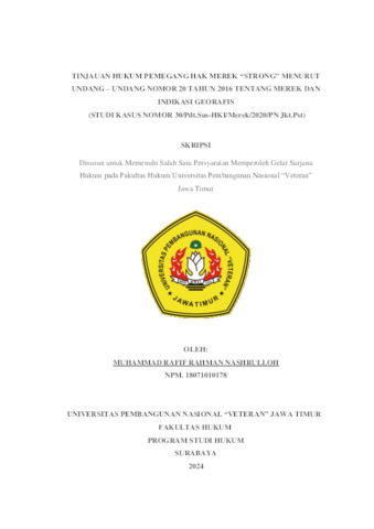 Nashrulloh, Muhammad Rafif Rahman (2025) TINJAUAN HUKUM PEMEGANG HAK MEREK “STRONG” MENURUT UNDANG – UNDANG NOMOR 20 TAHUN 2016 TENTANG MEREK DAN INDIKASI GEORAFIS (STUDI KASUS NOMOR 30/Pdt.Sus-HKI/Merek/2020/PN Jkt.Pst). Undergraduate thesis, UPN Veteran Jawa Timur.