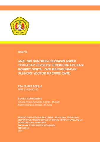 Aprilia, Eka Fahira (2025) Analisis Sentimen Berbasis Aspek Terhadap Persepsi Pengguna Aplikasi Dompet Digital OVO Menggunakan Support Vector Machine (SVM). Undergraduate thesis, UPN Veteran Jawa Timur.