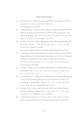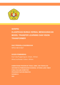 DHARMAWAN, DIAZ PRISHEILA (2025) KLASIFIKASI BUNGA HERBAL MENGGUNAKAN MODEL TRANSFER LEARNING DAN VISION TRANSFORMER. Undergraduate thesis, UNIVERSITAS PEMBANGUNAN NASIONAL "VETERAN" JAWA TIMUR.