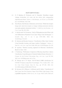 Rempah rimpang memiliki peran penting dalam dunia kuliner dan industri pangan, baik sebagai bumbu masakan, bahan obat tradisional, maupun produk olahan bernilai ekonomi tinggi. Namun, proses identifikasi manual terhadap jenis rempah masih menghadapi tantangan besar karena kemiripan visual antar spesies yang cukup tinggi. Oleh karena itu, penelitian ini bertujuan mengembangkan sistem klasifikasi otomatis berbasis citra digital untuk membedakan jenis rempah rimpang dengan lebih cepat dan akurat. Metode yang digunakan adalah Light Gradient Boosting Machine (LGBM), dikombinasikan dengan tiga jenis ekstraksi fitur: Gray Level Co-Occurrence Matrix (GLCM), Histogram of Oriented Gradients (HOG), dan Hue Saturation Value (HSV). Dataset yang digunakan berjumlah 2.250 citra, terdiri dari 1.250 data sekunder dan 1.000 data primer. Data dibagi dengan tiga skema rasio: 80:20, 70:30, dan 60:40. Proses pra-pemrosesan mencakup resizing citra menjadi 512x512 piksel, penghapusan latar belakang menggunakan rembg, normalisasi, serta augmentasi data melalui rotasi, flipping, pemotongan, perubahan pencahayaan, penskalaan, dan shearing. Hasil evaluasi menunjukkan bahwa fitur HSV memberikan kinerja terbaik dan paling stabil di berbagai rasio data. Pada rasio 70:30, akurasi mencapai 82,67%, mengungguli kombinasi fitur lainnya. Temuan ini menegaskan bahwa HSV adalah pilihan fitur yang optimal untuk klasifikasi citra rempah. Sistem yang dikembangkan memiliki potensi besar dalam mendukung otomatisasi identifikasi rempah di industri pangan, mengurangi ketergantungan pada proses manual, serta meningkatkan efisiensi, konsistensi, dan kualitas produk secara keseluruhan.