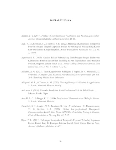 Syahputri, Anindya Vania Vashti Ghina (2025) Komunikasi Terapeutik Antara Perawat Terhadap Pasien (Studi Kuantitatif Pelaksanaan Komunikasi Terapeutik Antara Perawat Terhadap Pasien di Ruang Rawat Inap Pajajaran di RSUD Prof. Dr.Soekandar Mojokerto). Undergraduate thesis, UPN Veteran Jawa Timur.