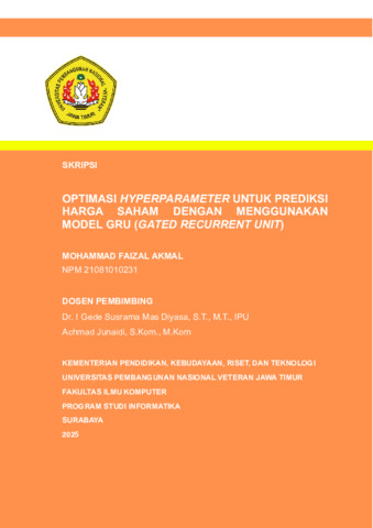 Akmal, Mohammad Faizal (2025) OPTIMASI HYPERPARAMETER UNTUK PREDIKSI HARGA SAHAM DENGAN MENGGUNAKAN MODEL GRU (GATED RECURRENT UNIT). Undergraduate thesis, Universitas Pembangunan Nasional "Veteran" Jawa Timur.