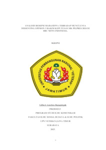 Rajagukguk, Gilbert Anselmo (2025) ANALISIS RESEPSI MAHASISWA TERHADAP MUNCULNYA DISSENTING OPINION 3 HAKIM KEPUTUSAN MK PILPRES 2024 DI BBC NEWS INDONESIA. Undergraduate thesis, Universitas Pembangunan Nasional Jawa Timur.
