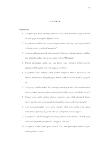 Penelitian ini menganalisis resepsi mahasiswa di Surabaya terhadap berita BBC News Indonesia berjudul "MK tolak seluruh gugatan sengketa Pilpres 2024, apa saja dissenting opinion dari tiga hakim yang tak sependapat?". Berita ini melaporkan penolakan Mahkamah Konstitusi (MK) terhadap gugatan sengketa Pilpres 2024 yang diajukan oleh pasangan calon nomor urut 01 dan 03, serta adanya perbedaan pendapat (dissenting opinion) dari tiga hakim MK yang menyoroti pentingnya pemilu yang jujur dan adil serta dugaan pelanggaran fundamental seperti politisasi bansos dan ketidaknetralan pejabat negara. Melalui wawancara dengan enam mahasiswa di Surabaya, penelitian ini menemukan beragam pandangan terkait keputusan MK dan dampaknya terhadap kepercayaan publik. Beberapa informan merasa kecewa dan mempertanyakan transparansi serta objektivitas keputusan MK. Sementara itu, informan lain berpandangan bahwa keputusan MK sudah tepat secara hukum karena kurangnya bukti konkret dari pihak penggugat. Penelitian ini menunjukkan bahwa persepsi mahasiswa dipengaruhi oleh berbagai faktor dalam memaknai berita terkait putusan MK. Dissenting opinion para hakim dianggap penting sebagai wujud demokrasi dan refleksi untuk perbaikan sistem pemilu ke depan. Mahasiswa berharap lembaga penyelenggara pemilu dapat lebih transparan, akuntabel, dan bebas dari intervensi demi mewujudkan pemilu yang lebih bersih, jujur, dan adil di masa depan. Kata Kunci: Analisis Resepsi, Mahasiswa, Dissenting Opinion, MK, Pilpres 2024, BBC News Indonesia