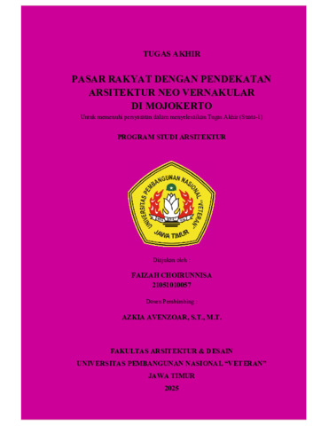 Choirunnisa, Faizah (2025) Pasar Rakyat dengan Pendekatan Arsitektur Neo Vernakular di Mojokerto. Undergraduate thesis, UPN Veteran Jawa Timur.