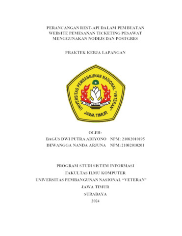 Arjuna, Dewangga Nanda and Adiyono, Bagus Dwi Putra (2024) Perancangan Rest-API Dalam Pembuatan Website Pemesanan Ticketing Pesawat Menggunakan NodeJS Dan PostgreSQL. Project Report (Praktek Kerja Lapang dan Magang). UPN Veteran Jawa Timur, Surabaya.