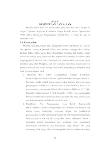 Berutu, Verdian Loloate Berutu (2025) OPTIMASI ALGORITMA K-MEDOIDS DENGAN PARTICLE SWARM OPTIMAZATION (PSO) DALAM KLASTERISASI PENGANGGURAN TERBUKA USIA 15 TAHUN KE ATAS DI SUMATERA UTARA. Undergraduate thesis, UPN VETERAN JAWA TIMUR.