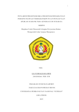 Amini, Lia Nurhalijah (2025) PENGARUH PERSEPSI RESIKO, PERSEPSI KEMUDAHAN DAN PERSEPSI MANFAAT TERHADAP KEPUTUSAN PENGGUNAAN APLIKASI SEABANK PADA GENERASI Z DI SURABAYA. Undergraduate thesis, UPN "Veteran" Jawa Timur.
