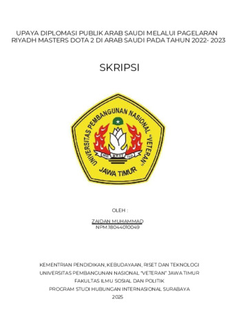 Muhammad, Zaidan (2025) UPAYA DIPLOMASI PUBLIK ARAB SAUDI MELALUI PAGELARAN RIYADH MASTERS DOTA 2 DI ARAB SUADI PADA TAHUN 2022 - 2023. Undergraduate thesis, UPN Veteran Jawa Timur.