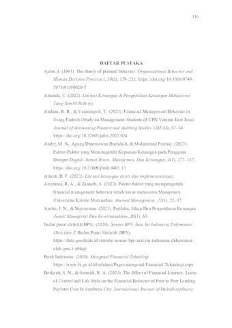 Ameera, Najwa Saffa (2025) ANALIS PENGARUH LITERASI KEUANGAN DAN FINANCIAL TECHNOLOGY TERHADAP KEPUASAN KEUANGAN DENGAN PERILAKU PENGELOLAAN KEUANGAN SEBAGAI MEDIASI. Undergraduate thesis, Universitas Pembangunan Nasional Veteran Jawa Timur.