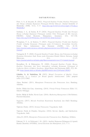 Al islami, Haikal zuliansyah (2025) PENGARUH KUALITAS DAN HARGA PRODUK TERHADAP KEPUASAN PELANGGAN BRAND COBOTTEX GRESIK. Undergraduate thesis, UPN Veteran Jawa Timur.