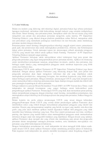 Laporan ini merangkum pengalaman magang dan Studi Independen Bersertifikat (MSIB) di PT Impactbyte Teknologi Edukasi. Fokus proyek adalah desain antarmuka pengguna (UI/UX) untuk aplikasi Smart Farming bernama Farmaster, aplikasi berbasis teknologi yang dirancang untuk membantu petani mengoptimalkan kegiatan pertanian. PT Impactbyte sendiri bergerak di bidang teknologi edukasi, memberikan penekanan pada solusi yang relevan dengan kebutuhan industri pertanian. Misi dari proyek ini adalah membuat desain yang bisa menghadirkan solusi digital inovatif bagi petani, memungkinkan mereka mengelola kegiatan pertanian dengan lebih efisien. Fokus utama adalah memberikan pengalaman pengguna yang dapat bekerja secara efektif. MSIB dijalani melalui serangkaian kegiatan belajar mandiri, live sessions, dan mentoring, dengan penerapan prinsip-prinsip desain UI/UX pada proyek Smart Farming. Pencapaian hasil mencakup pengembangan wireframes, user flows, dan prototipe, serta pemahaman mendalam tentang aspekaspek penting dalam desain antarmuka. Proses MSIB ini memberikan wawasan mendalam tentang dunia desain UI/UX dan aplikasinya dalam konteks pertanian digital. Kombinasi pembelajaran mandiri, kolaborasi tim, dan penerapan teknologi edukasi menjadi fondasi kuat dalam mencapai tujuan proyek. Kesimpulan umum mencakup apresiasi terhadap nilai mandiri, kolaborasi, dan pemahaman mendalam terhadap tuntutan industri kerja.