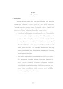 ABSTRACT NAUFAL IBADILLAH, 18042010149, Pengaruh E- Service Quality, E- Trust, Dan E- Satisfaction Ter hadap Repurchase I ntention Produk Skincare & Bodycare Skintific Pada E-Commerce Shopee Shopee is the most popular and best e-commerce in Indonesia today. Since it was first launched, Shopee has continued to innovate with features that can benefit both sellers and buyers. Here are some of them, Shopee Live This is a feature that allows sellers to do live streaming, to introduce and promote products directly to buyers This study was conducted to determine the effect of E-service Quality, E- Trust, and E-Satisfaction on Repurchase Intention for Skintific products in Surabaya. The type of research used is quantitative research. The population used in this study are people who live in Surabaya who know Skintific products. The sample in this study were 96 respondents. The sampling technique used in this study was nonprobability sampling. The type of data used is primary data, namely data obtained directly from the object of research. The data collection technique was carried out by distributing questionnaires via Google Form. The data analysis technique used in this research is multiple linear by utilizing SPSS software version 29. Thus the results of this study indicate that E-service Quality, E-Trust, and E-Satisfaction simultaneously affect Repurchase Intention of Skintific products in Surabaya. E-service Quality, E-Trust, and E-Satisfaction have a positive and partial effect on Repurchase Intention of Skintific products in Surabaya. Keywords: E-service Quality, E-Trust, dan E-Satisfaction, Repurchase Intention