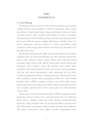 Nagari, Ersy Genius and Arimawan, Kesya Sakha Nesya and Farhana, Farizah RANCANG BANGUN SISTEM INFORMASI PERJALANAN DINAS BIRO PBJ BERBASIS WEBSITE. Project Report (Praktek Kerja Lapang dan Magang). UPN Veteran Jawa Timur. (Unpublished)