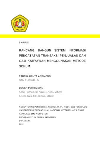 Ardiyono, Taufiq Arinta (2025) Rancang Bangun Sistem Informasi Pencatatan Transaksi Penjualan dan Gaji Karyawan Menggunakan Metode Scrum. Undergraduate thesis, UPN Veteran Jawa Timur.