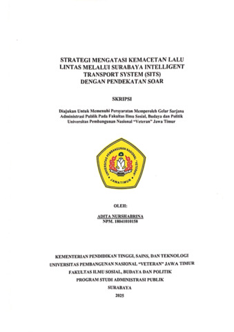 ABSTRACT ADITA NURSHABRINA. 18041010158. STRATEGIES TO OVERCOME TRAFFIC CONGESTION THROUGH SURABAYA INTELLIGENT TRANSPORT SYSTEM (SITS) WITH SOAR APPROACH This study aims to analyze and describe the strategies of the Surabaya Department of Transportation in overcoming traffic congestion through the innovation of the Surabaya Intelligent Transport System (SITS) using the SOAR approach (Strengths, Opportunities, Aspirations, Results). Using a descriptive qualitative method with data collection techniques including interviews, observation, and documentation, this research reveals that the SITS innovation has strong internal capabilities such as infrastructure, human resources, and supportive regulations. Moreover, external opportunities such as environmental campaigns and smart technologies further strengthen the implemented strategies. Public aspirations regarding traffic congestion and the use of public transport are addressed through enhanced traffic information services and monitoring systems. The strategy implementation shows significant improvements in reducing congestion, increasing safety, and improving traffic management effectiveness in Surabaya. Keywords: Strategy, Traffic Congestion, SITS, SOAR