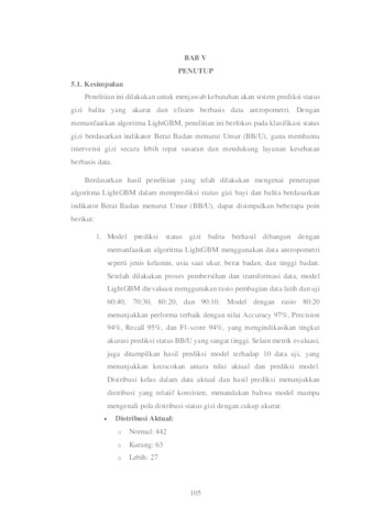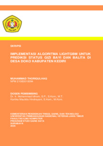 Thoriqulhaq, Muhammad (2025) IMPLEMENTASI ALGORITMA LIGHTGBM UNTUK PREDIKSI STATUS GIZI BAYI DAN BALITA DI DESA DOKO KABUPATEN KEDIRI. Undergraduate thesis, UNIVERSITAS PEMBANGUNAN NASIONAL "VETERAN" JAWA TIMUR.