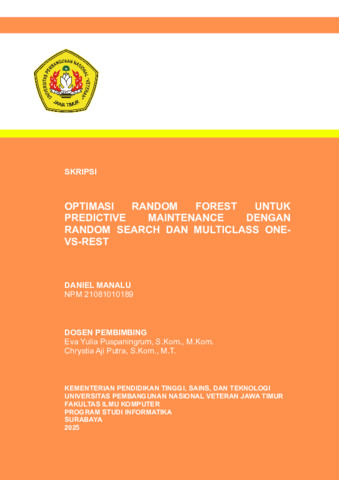 Manalu, Daniel (2025) Optimasi Random Forest Untuk Predictive Maintenance Dengan Random Search Dan Multiclass One-vs-Rest. Undergraduate thesis, UPN Veteran Jawa Timur.