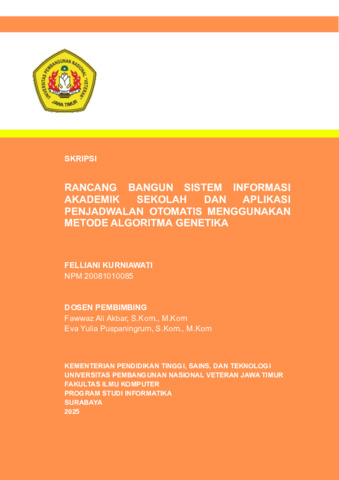 Kurniawati, Felliani (2025) Rancang Bangun Sistem Informasi Akademik Sekolah dan Aplikasi Penjadwalan Otomatis Menggunakan Metode Algoritma Genetika. Undergraduate thesis, UPN Veteran Jawa Timur.