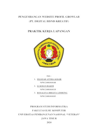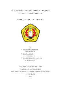Khair, Fildzah Attira and Hakim, Lukman and Limbong, Rosalena Brigita (2024) PENGEMBANGAN WEBSITE PROFIL GROWLAB (PT. DIGITAL BISNIS KREATIF). Project Report (Praktek Kerja Lapang dan Magang). UPN Veteran Jawa Timur. (Unpublished)