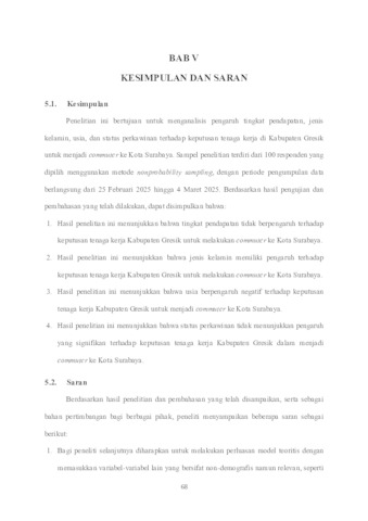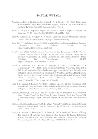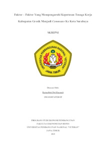 Hasanah, Ramadhini Dwi (2025) Faktor – Faktor yang Mempengaruhi Keputusan Tenaga Kerja Kabupaten Gresik Menjadi Commuter ke Kota Surabaya. Undergraduate thesis, UPN Veteran Jawa Timur.