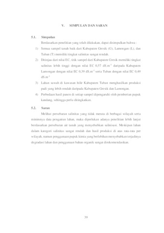Identifikasi salinitas Tanah dan Hasil Padi di Kawasan Hilir Kabupaten Gresik, Lamongan, dan Tuban