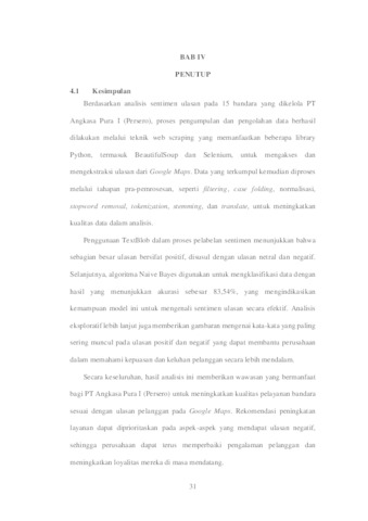 Arofah, Muhimmatul (2025) Analisis Sentimen Menggunakan Naive Bayes di PT Angkasa Pura I (Persero) Berdasarkan Ulasan pada Google Maps. Project Report (Praktek Kerja Lapang dan Magang). Universitas Pembangunan Nasional Veteran Jawa Timur.