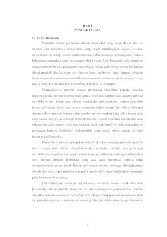 Semakin banyaknya pemilik hewan peliharaan berbanding lurus dengan tingginya resiko hewan peliharaan tersebut mati, dampak yang ditimbulkan apabila hal tersebut terjadi kepada pemilik hewan adalah timbulnya rasa sedih, kecewa dan penuh rasa bersalah apabila diakibatkan oleh kelalaian pemilik sendiri. Mayoritas kematian hewan peliharaan terjadi karena berbagai faktor, yaitu telat memberikan makanan sebagai faktor eksternal dan terkena penyakit atau infeksi sejenis sebagai faktor internal karena usia namun bisa juga terjadi oleh faktor eksternal, kurangnya pengawasan dan pemberian makan secara teratur menjadi poin penting bagaimana cara mengantisipasinya. Hal yang perlu dilakukan oleh pemilik hewan yang memiliki kesibukan penuh sehingga tidak terlalu memperhatikan hewan peliharaannya adalah mencatat segala sesuatu yang bisa membantu untuk selalu ingat kepada hewan peliharaan mereka, maka dari itu dibuatlah sebuah website bernama MyPets!, website tersebut menyediakan beberapa fitur untuk memudahkan pemilik untuk melakukan pencatatan jadwal makan dan jadwal vaksin, selain itu sebelum menjalankan beberapa fitur tersebut ada instruksi penambahan data diri hewan agar pemilik merasa hewannya tetap berada dalam pengawasannya. MyPets! dibangun dengan konsep pengembangan perangkat lunak Agile, menurut sebagian besar pengembang konsep tersebut cukup sederhana apabila sebuah perangkat lunak akan segera digunakan pengguna atau dipasarkan secara umum dengan skala kecil karena memiliki enam langkah pengembangan fleksibel, yaitu perencanaan, implementasi, pengujian, dokumentasi, deployment dan pemeliharaan secara berkala, konsep ini dipilih karena MyPets! adalah sebuah prototype awal dalam perancangan sebuah perangkat lunak yang ditujukan kepada pemilik hewan peliharaan agar membantu proses pemeliharaan yang tepat, sehingga kritik dan saran dari pengguna sangat dibutuhkan dalam peningkatan segala aspek yang perlu di benahi atau penambahan fitur untuk memenuhi tuntutan pengguna. Kelebihan dari MyPets! adalah tampilan antarmuka yang cukup mudah dipahami karena minimalis dengan kerangka kerja Design Thinking, meskipun berbasis website dengan skema desain dekstop-first tersebut mementingkan tampilan sebuah website atau perangkat lunak ke dalam versi dekstop sebelum nanti disesuaikan dengan versi tablet dan komputer sejenis, mengingat banyaknya pengguna handphone yang menggunakannya sebagai akses kedalam website maka skema desain tersebut sangat pas apabila digunakan pada pengembangan MyPets! Selama beberapa waktu kedepan. Selain memiliki kelebihan seperti diatas ada beberapa fitur yang harus disempurnakan lagi supaya menjadi sebuah website dengan standarisasi masa kini agar dapat dijalankan tanpa menggunakan paket internet atau secara luring dengan hanya menggunakan penyimpanan lokal di chrome, lalu melakukan implementasi progressive web app agar website bisa lebih dinikmati pengguna secara mudah dengan mengunduhnya saja namun tidak melalui playstore melainkan langsung pada chrome. Fitur tersebut merupakan penyempurna sebuah perangkat lunak berbasis website agar lebih fleksibel dalam mode akses daring atau luring serta dari segi penggunaannya kepada masyarakat umum, sekarang Progressive Web App menjadi sebuah fitur wajib yang harus ada pada setiap pengembangan perangkat lunak masa kini.