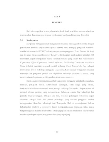 Latansyah, Cindy Berliana (2025) Analisis Loyalitas Pelanggan Tokopedia Berdasarkan Pendekatan Stimulus – Organism – Response (SOR). Undergraduate thesis, Universitas Pembangunan Nasional "Veteran" Jawa Timur.