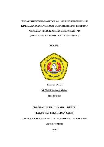 Aldian, M. Nabil Daffany (2025) PENGARUH INSENTIF, MOTIVASI DAN KEPEMIMPINAN MELALUI KINERJA KARYAWAN SEBAGAI VARIABEL MEDIASI TERHADAP PENJUALAN PRODUK DENGAN TOOLS SMART-PLS (STUDI KASUS CV. SENDY LEATHER SIDOARJO). Undergraduate thesis, UPN Veteran Jawa Timur.