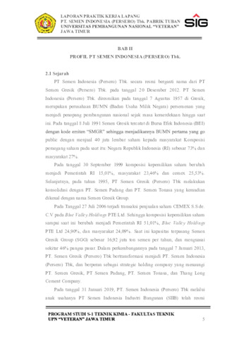 Faturrochmah, Riza Nissa (2025) LAPORAN PRAKTIK KERJA LAPANG PT. SEMEN INDONESIA (Persero) Tbk. PABRIK TUBAN. Project Report (Praktek Kerja Lapang dan Magang). UPN Veteran Jawa Timur. (Unpublished)