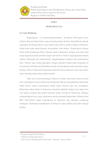 Setiani, Astri (2025) Pabrik Kaprolaktam dari Sikloheksanon Oksim dan Asam Sulfat dengan Proses Rearrangement Beckmann Kapasitas 95.000 Ton/Tahun. Undergraduate thesis, UPN Veteran Jawa Timur.
