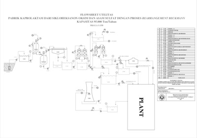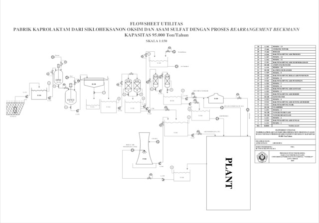 Caprolactam Plant from Cyclohexanone Oxime and Sulfuric Acid with Beckmann Rearrangement Process Capacity 95,000 Ton/Year will be established in Cikande Modern Industrial Estate, Jl. Raya Jakarta-Serang KM. 68 Cikande, Nambo Ilir, Kec. Kibin, Serang Regency, Banten 42186. This Caprolactam plant uses a continuous operating system for 24 hours a day with 330 working days and 220 employees. This plant uses raw materials Cyclohexanone Oxime obtained from Tercents Enterprise LLP located in Chaanxi, China, Sulfuric Acid obtained from PT Indonesian Acid Industry located in Cakung, Ammonium Hydroxide obtained from PT Pupuk Kujang Cikampek located in Karawang, and Toluene obtained from PT Stryrindo Mono Indonesia located in Serang. This caprolactam can be used as raw material for Nylon-6, Nylon filament yarn, nylon-6 resin, polyurethane, and caproic amino acid. While from this process, a by-product will be produced, namely ammonium sulfate which can be used as an agricultural fertilizer (fertillizer), as a buffer in chemical solutions, textile dyes, and so on. The production process used in this plant is the Beckmann Rearrangement process. There are several stages, the first is the Beckmann Rearrangement reaction between cyclohexanone oxime and sulfuric acid catalyst using a stirred tank flow reactor at 115°C and 2 atm pressure which will produce caprolactam. After that, caprolactam which still contains sulfuric acid will be neutralized using a stirred tank flow reactor at 80°C and 1 atm pressure which will produce caprolactam and ammonium sulfate by-product.