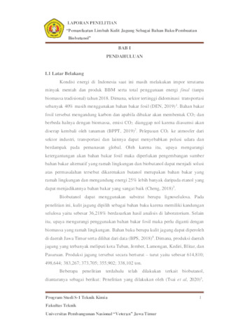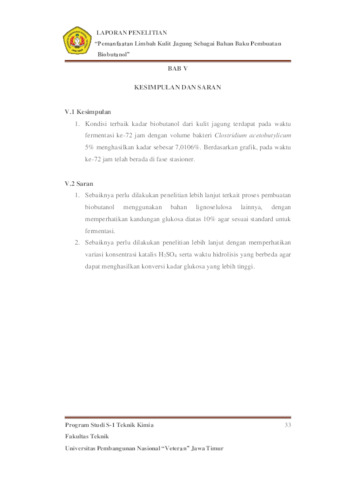 Pemanfaatan Limbah Kulit Jagung Sebagai Bahan Baku Pembuatan Biobutanol