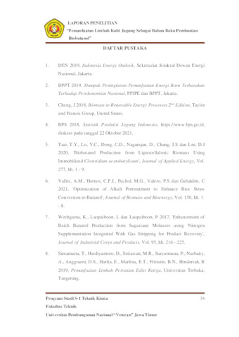 Alghifari, Abid (2024) Pemanfaatan Limbah Kulit Jagung Sebagai Bahan Baku Pembuatan Biobutanol. Undergraduate thesis, UPN Veteran Jawa Timur.