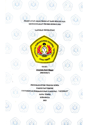 Sinaga, Jonathan Fayol (2023) Pembuatan Asam Oksalat dari Sekam Padi Menggunakan Proses Hidrolisis. Undergraduate thesis, UPN Veteran Jawa Timur.
