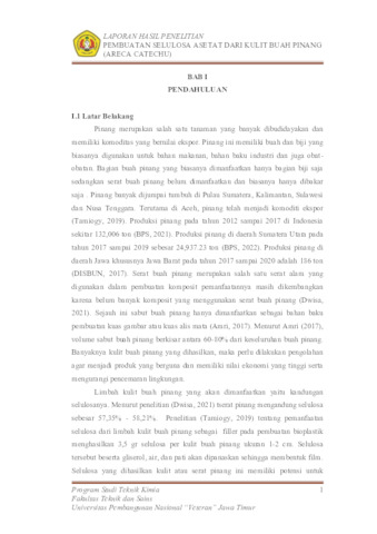 Vashti, Revita Arendri (2023) PEMBUATAN SELULOSA ASETAT DARI KULIT BUAH PINANG (ARECA CATECHU). Undergraduate thesis, UPN Veteran Jawa Timur.