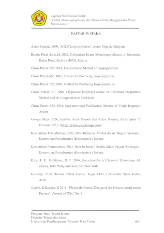 Vashti, Revita Arendri (2025) PRA RENCANA PABRIK MONOISOPROPILAMINE DARI DIMETIL KETON DENGAN MENGGUNAKAN PROSES HIDROAMINASI. Undergraduate thesis, UPN Veteran Jawa Timur.