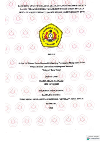 Raynato, Marsa Helmi (2025) TANGGUNG GUGAT DEVELOPER ATAS KERUGIAN NASABAH BANK BTN DALAM PERJANJIAN KREDIT PEMILIKAN RUMAH (STUDI PUTUSAN PENGADILAN NEGERI BANYUWANGI NOMOR 253/PDT.G/2020/PN BYW). Undergraduate thesis, Universitas Pembangunan Nasional Veteran Jawa Timur.