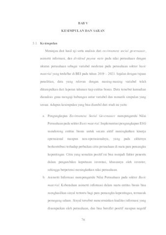 Pengungkapan Environment Social Governance (ESG), Asimetri Informasi Dan Dividend Payout Terhadap Nilai Perusahaan Dengan Ukuran Perusahaan Sebagai Variabel Moderasi Pada Perusahaan Basic Materials